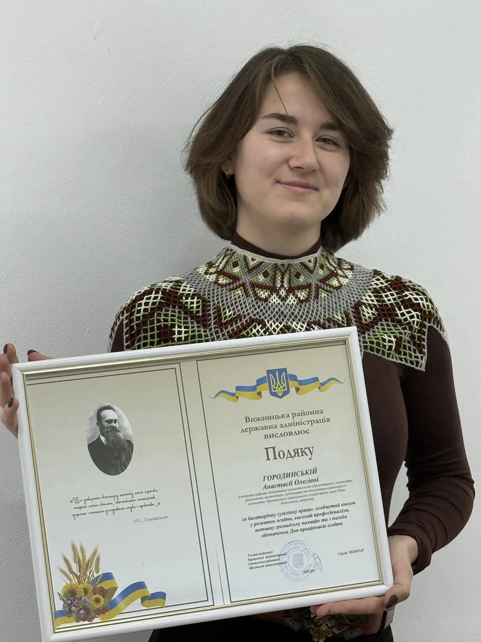 Викладацько-педагогічний склад кафедри декоративно-прикладного та образотворчого мистецтва факультету АБДПМ Чернівецького національного університету імені Юрія Федьковича були відзначені Почесними грамотами Вижницької районної державної адміністрації та Вижницької районної ради за сумлінну працю, високий професіоналізм, вагомий внесок у розвиток культури та з нагоди професійного свята.